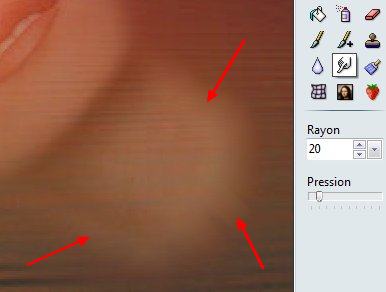 9a. Largeur:20 Couleur: celle du bord du visage à récupérer avec la pipette. Opacité:80% Flou coché
