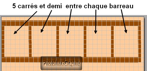 27.Attention:Tracez la barre verticale pour avoir 5 carrés et demi comme entre les autres barreaux