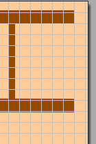 13.Tracez 2 bandes horizontales marron foncé comme ci-dessous ( 7 carreaux entre les 2)