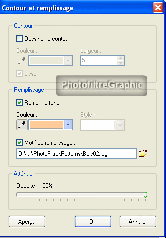 40.Dans Remplissage, cochez Remplir le fond et Motif de remplissage