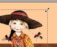 48.Si vous avez un fond vert qui se place autour de la fillette, reculez pour annuler et recommencez ainsi: 49.Clic dans le blanc avec la baguette magique pour le sélectionner 50.Menu Sélection > Inverser 51.Menu Edition > Copier 52.Clic droit sur la barrière > Coller