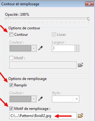 40.Dans Options de remplissage, cochez Remplir et Motif de remplissage