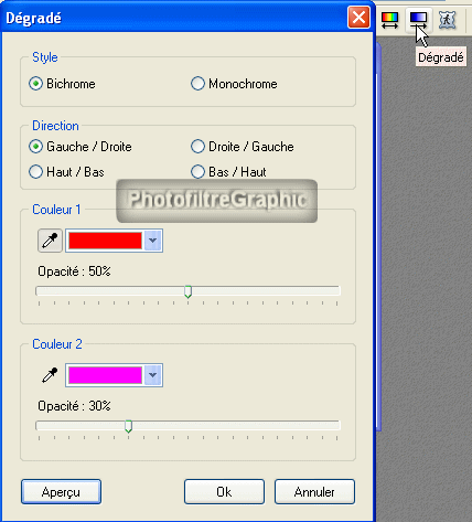2.Cliquez sur l'icône Dégradé ou Menu Filtre > Couleur > Dégradé