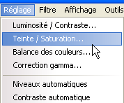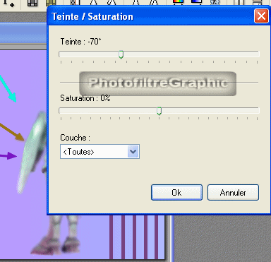 28.Pour changer les couleurs, dans le Menu Réglage,cliquez sur Teinte/Saturation Coulissez la teinte à -70