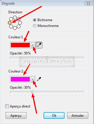 3.Couleur 1= rouge Opacité = 50%.Couleur 2 = mauve Opacité = 30%