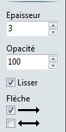 23.Pour tracer des flèches de différentes couleurs sélectionnez l'outil Ligne. Epaisseur = 3 et cochez la flèche, en bas
