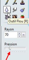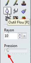 38.Passez l'outil Flou dessus. Rayon = 10. Pression sur 1