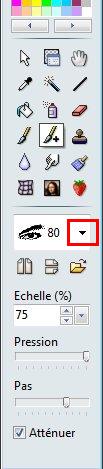 33.Cliquez sur le petit dossier jaune , ça ouvre la liste des Brushes