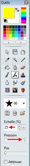36.Couleur d'avant-plan jaune. Echelle % = 25. Pression = maxi