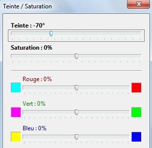 29. Coulissez la teinte à -70°. Saturation == 0%