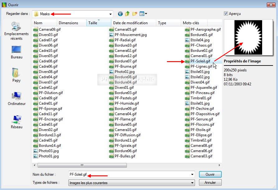 23.Cliquez sur Ouvrir, le masque Soleil est dans la fenêtre Photomasque