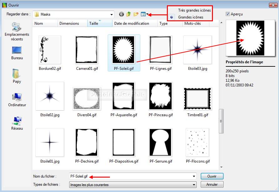 20.Vous pourriez aussi chercher des masques dans le dossier Réserve Masks qui est dans les Fournitures pour PhotoFiltre de Mes documents