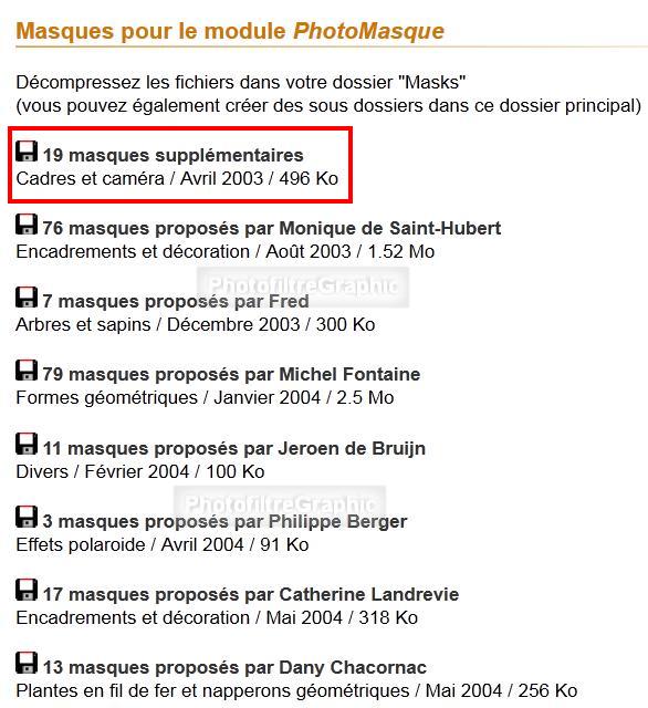 les fournitures supplémentaires dans le dossier que je conseille de créer: Fournitures pour PhotoFiltre3. Quand vous aurez créé le dossier Réserve Masks allez sur le site PhotoFiltre ici