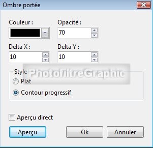 29.Couleur = noire Opacité = 70 X = 10 Y = 10 Cocher Contour progressif