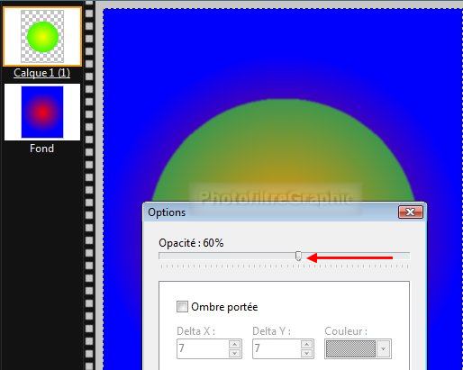 17. Double-clic dans la vignette du calque, coulissez le curseur Opacité du haut sur 60%