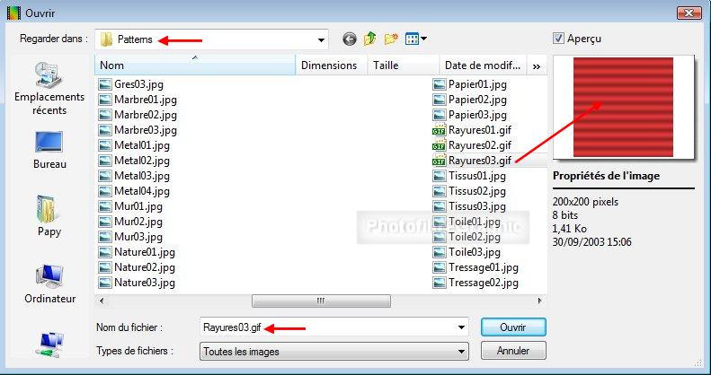 27a.Dans le dossier Patterns, sélectionnez Rayures03