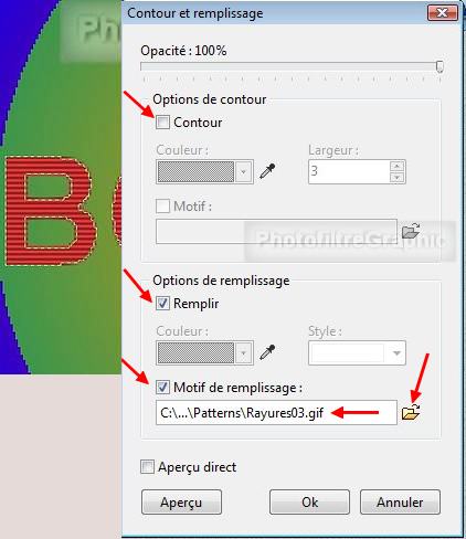 26b.Dans Options de remplissage, cochez Remplir et Motif de remplissage
