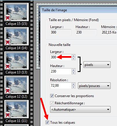 8.Menu Image > Taille de l'image. Largeur = 300. Tous les calques coché