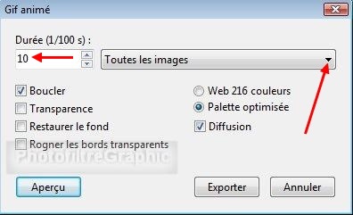 10.Cochez: Boucler Palette optimisée Diffusion Durée = 10 Toutes les images