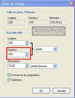 9.Indiquez 415 pour la hauteur,la largeur se mettra automatiquement à 226