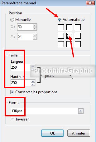 10.Pour bien centrer ce cercle dans l'image et ajuster sa Taille: Clic droit dedans > Paramétrage manuel