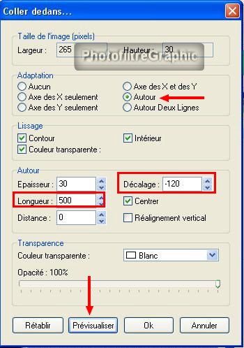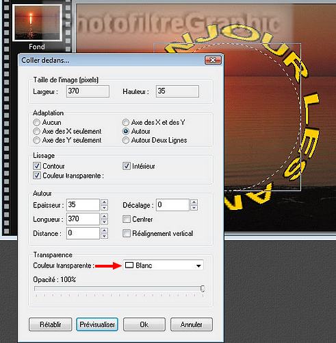 17.Si du blanc entoure les lettres: 18.cliquez avec le curseur dans ce blanc:le curseur se transforme en pipette et le Blanc se met dans le petit rectangle sur la ligne Couleur transparente en bas