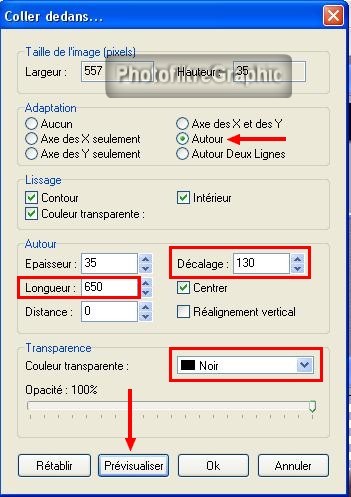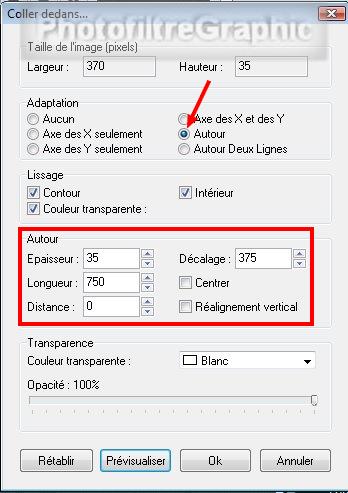 35. Longueur:750 et Décalage:375 (ces chiffres sont différents suivants les tailles des images et des écritures: à trouver en tâtonnant )