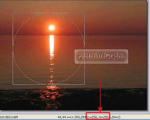 9.Tracez un cercle sur l'image du coucher de soleil en tenant la touche majuscule enfoncée