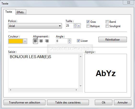 5.N'hésitez pas à aller dans l'onglet Effets pour mettre,par exemple,un contour d'une autre couleur ou un Motif à la place de la couleur