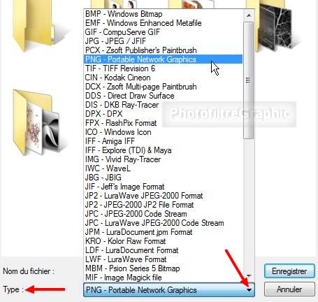20. Menu Fichier > Enregistrer sous... Clic sur la pointe pour sélectionner le format png