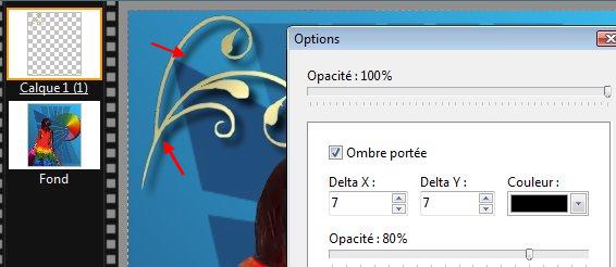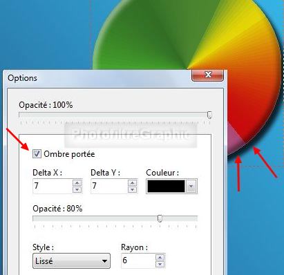 10.Double-clic sur la vignette du calque. Cochez Ombre portée. 7/7. Noir. Lissé. Rayon= 6