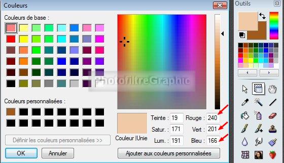1.Mettez en couleur d'avant-plan (explications) le beige R=240 V=201 B=166