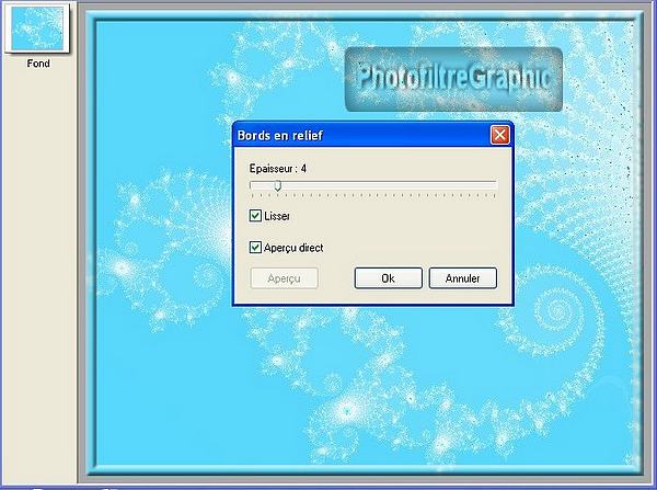5.Menu Filtre > Encadrement > Bordures en relief Epaisseur = 4