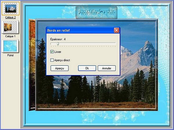 3.Menu Filtre > Encadrement > Bordures en relief Epaisseur = 4