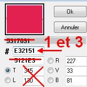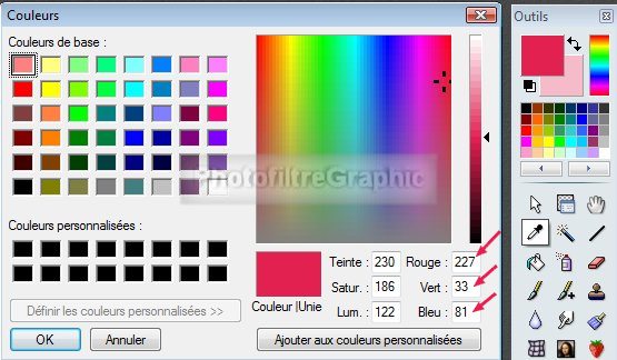 2.Mettez en couleur d'avant-plan(explications) le rouge R=227 V=33 B=81
