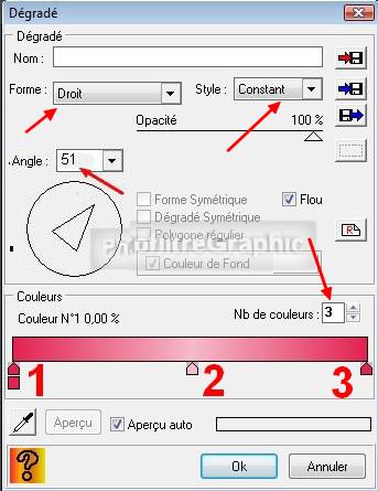 5b.Forme = droit. Nombre de couleurs = 3. Angle = 51,00, voir mon tuto