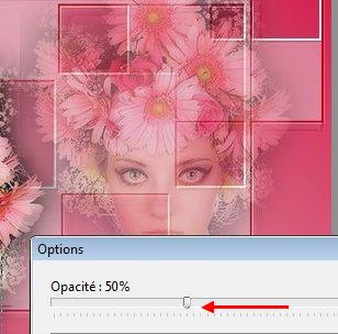 21.Clic droit dans la vignette du calque 2 > Options. Curseur Opacité du haut sur 50%