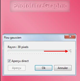 9.Pour adoucir la diagonale: Menu Filtre > Effet d'optique > Flou gaussien rayon: 30 pixels (ou 12 pixels sur d'anciennes versions)