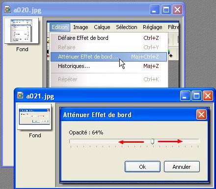 33.Si l'effet de bord est trop important,vous pouvez l'atténuer dans le Menu Edition: Atténuer Effet de bord