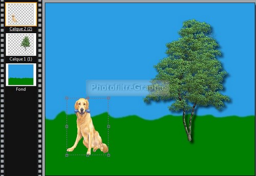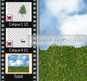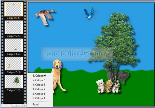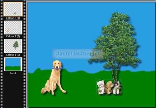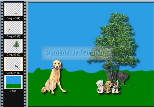37a.Pour placer le chat derrière l'arbre,glissez le calque 4 tout en bas ( ou Menu calque > Ordre > Mettre en arrière-plan)