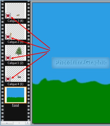 43.Menu Calque > Masquer tous les calques,ça permet de voir le fond