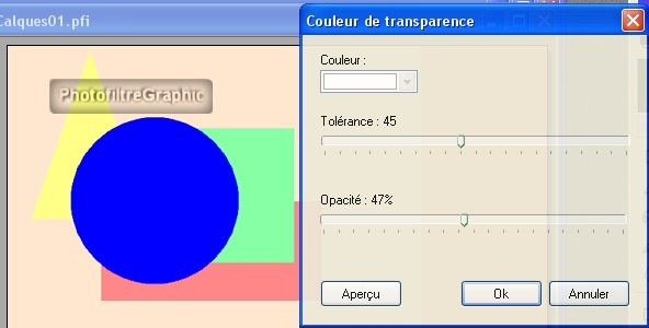Transparence se sélectionne