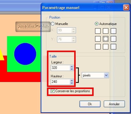 67.Paramètrage manuel permet de modifier la taille (c'est une manière précise de Redimensionner) et indique une Position précise