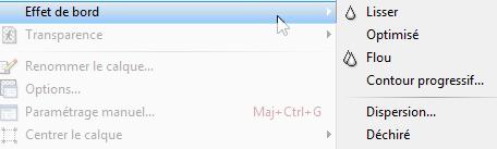 9. Le Menu Calque a certaines commandes particulières:Nouveau, Insérer un nouveau fond, Effet de bord, Centrer le calque, Recadrer le calque, Exporter le calque