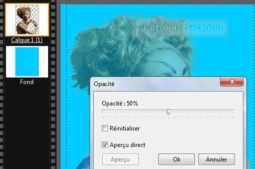 15.Couleur ouvre un calque qui met une sorte de voile sur l'ensemble suivant la position du curseur Opacité