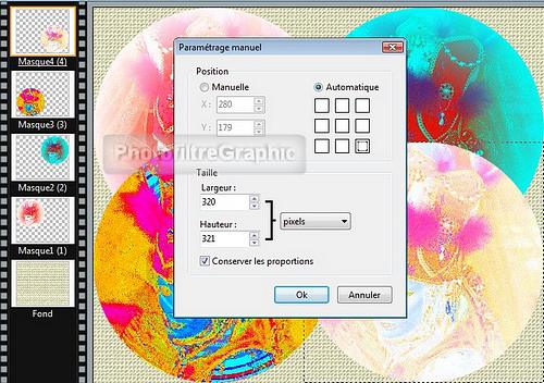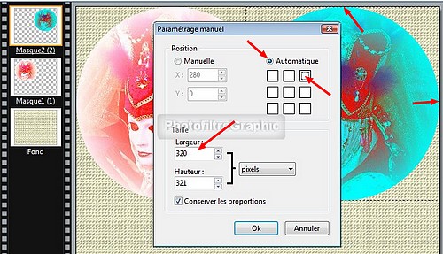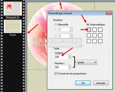 14.Largeur:320 Cochez Automatique et cliquez sur le 1ier carré pour positionner en haut, à gauche