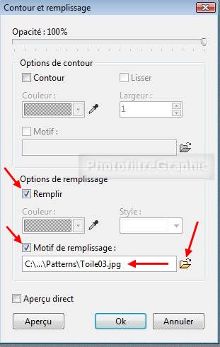 3.Clic droit dedans > Contour et remplissage Motif de remplissage:Toile03