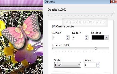 46.Double-clic sur la vignette du papillon. Cochez Ombre portée