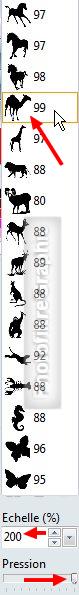Taille maxi = 200%. Pression = maxi
