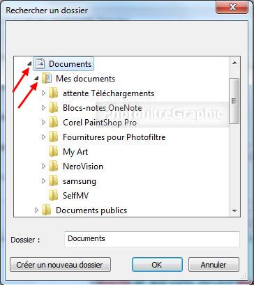 20.Clic sur la pointe devant Documents et sur celle devant Mes documents